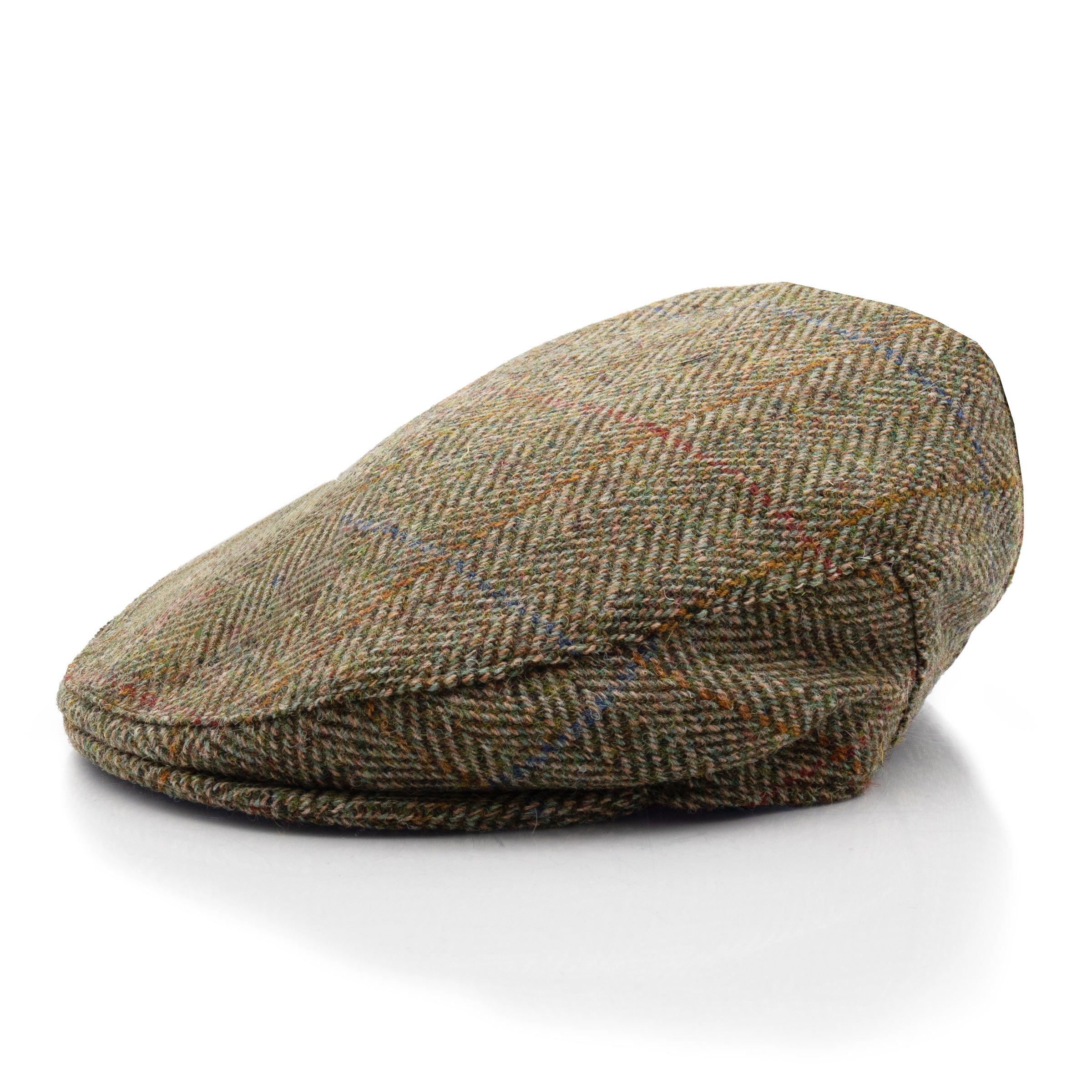 A classic flat cap in Harris Tweed, handwoven in the Outer Hebrides. Fully lined with a stitched peak for comfort and structure.
