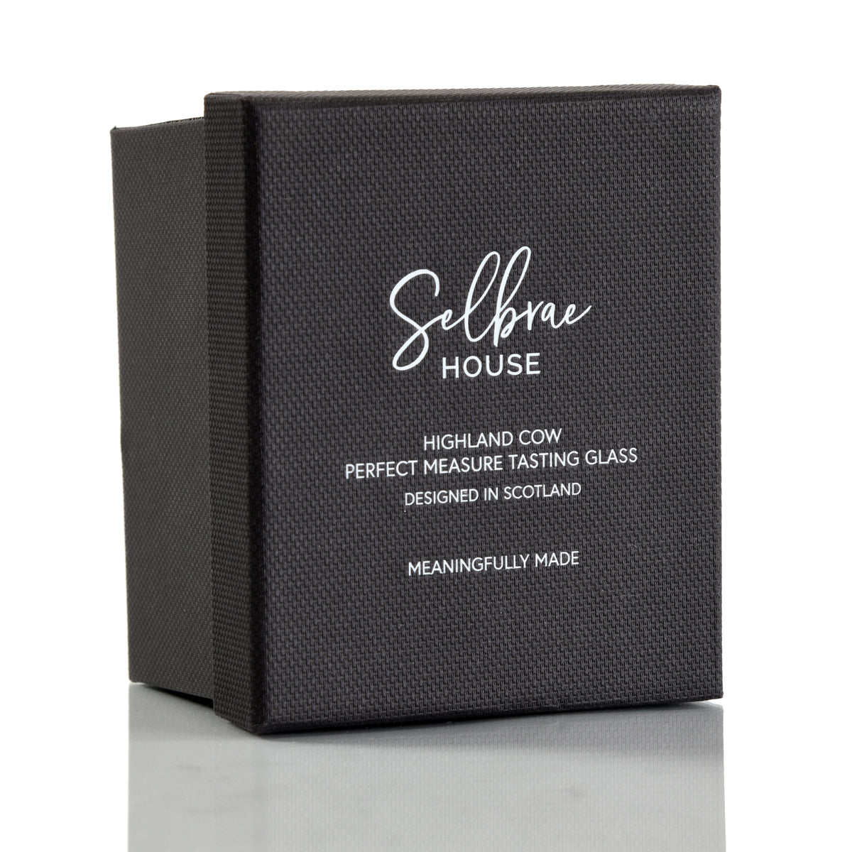 A uniquely shaped glass which allows you to fully appreciate the aroma and flavour of your favourite spirit. Engraved with a striking highland cow design and complete in it's own beautiful gift box, this tasting glass is sure to impress.